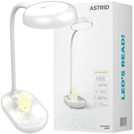 Lampa biurkowa LED 4,5W ze świecącym króliczkiem PURE FLB-30 ASTRID biała Forever Light