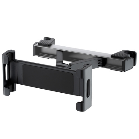 Intuicyjny mechanizm teleskopowy pozwala na błyskawiczne mocowanie na zagłówku fotela. Silikonowa amortyzacja na zaciskach chroni przed zarysowaniem i dodatkowo stabilizuje uchwyt.